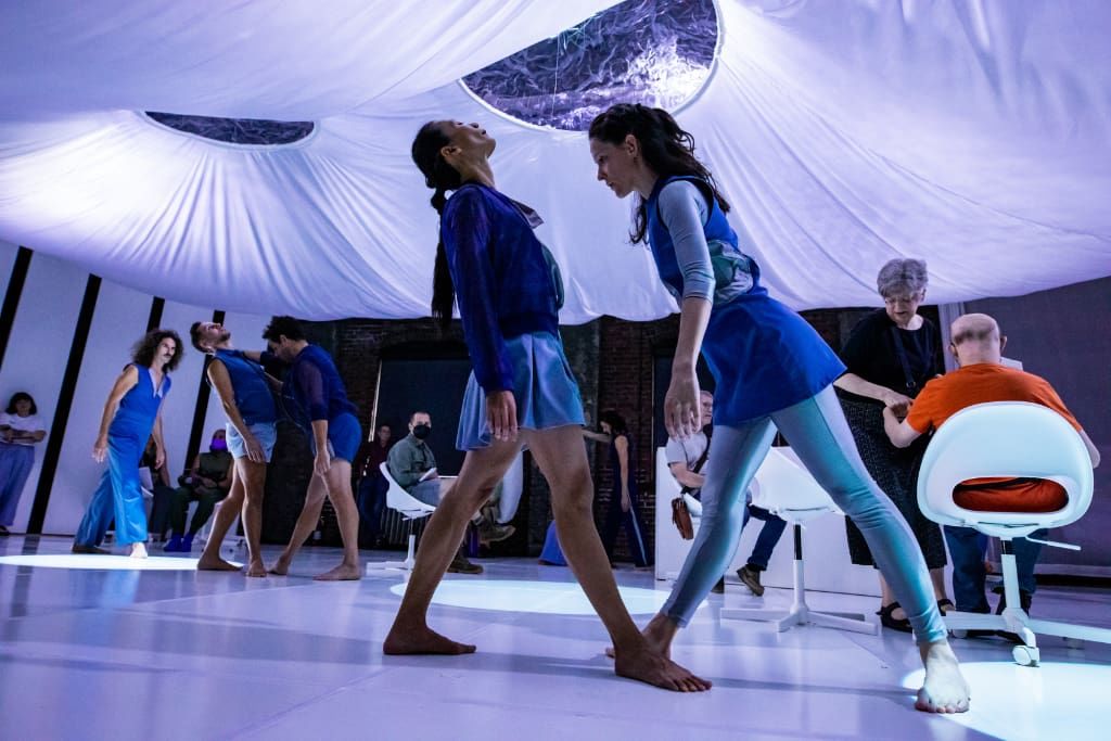 Renowned choreographer Susan Marshall and Tony Award-winning set designer Mimi Lien combine forces to create Rhythm Bath, an immersive and inclusive dance installation. Rhythm Bath blends performance, meditation, and wonder, inviting you to sense the dance happening around you. Come and go as you like—explore the accessible, transporting space of shifting fabric, light, sound, and movement.